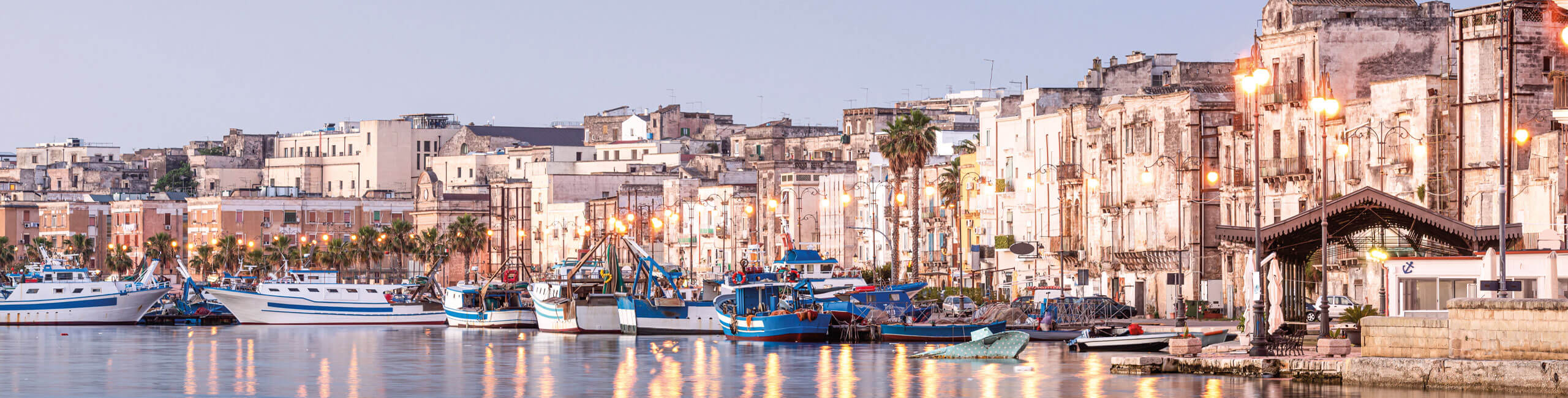 Across Imperial PugliaWith its show-stopping seafront cathedral, Trani provides a picturesque gateway to central Puglia, an ancient land of castles, cathedrals and medieval villages. Take in Trani's marina and historic centre, then strike inland to feast on heavenly burrata in Andria. Continue southwards to UNESCO-listed Castel del Monte, Puglia's most celebrated and mysterious castle.